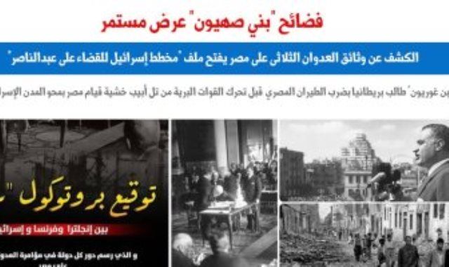 رصد موقع "برلماني"، المتخصص فى الشأن التشريعى والنيابى، فى تقرير له تحت عنوان: "فضائح بنى صهيون عرض مستمر"، استعرض خلاله تطورات الكشف عن وثائق العدوان الثلاثى على مصر يفتح ملف "مخطط إسرائيل للقضاء على الزعيم عبدالناصر"، ومطالبة "بن غوريون" بريطانيا بضرب القوات الجوية المصرية قبل تحرك القوات البرية الإسرائيلية خشية قيام مصر بمحو المدن الإسرائيلية، وذلك بعد أن كشفت وثائق بريطانية منذ عدة أيام أن الهجوم العسكرى الثلاثى على مصر عام 1956 كان أكبر بكثير مما أعلن فى حينه.