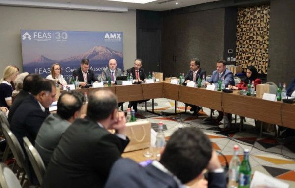 شاركت بورصة فلسطين إلكترونياً ممثلة بمديرها العام السيد نهاد كمال في أعمال الجمعية العمومية 41 لاتحاد الأسواق الأوروبية الآسيوية The Federation of Euro-Asian Capital Markets (FEAS)، الذي عقد في العاصمة الأرمينية يريفان الخميس الماضي 29/05/2025.
